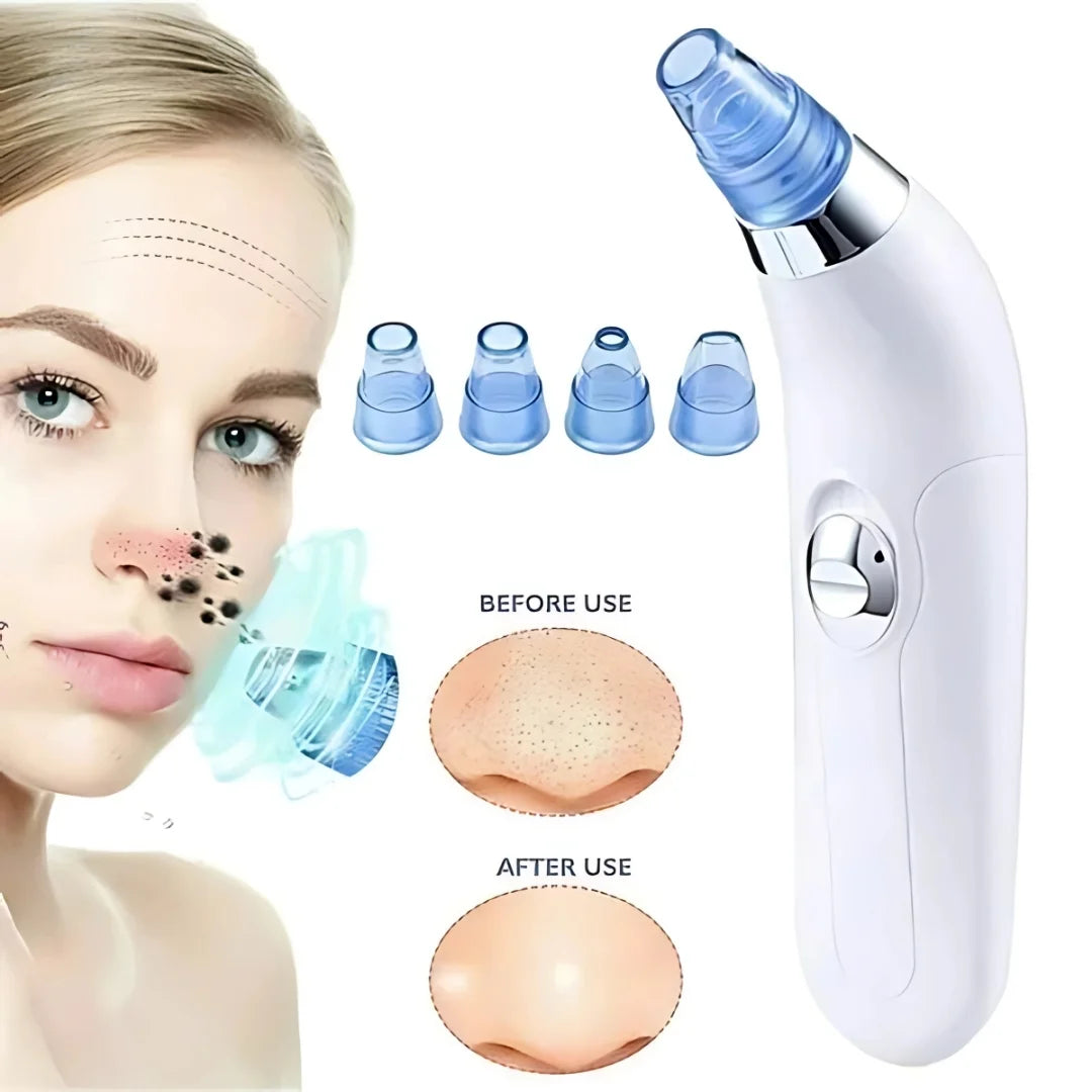Deep clean your pores with this 4-in-1 portable blackhead removal machine. Features powerful derma suction to eliminate blackheads, acne, and excess oil. Compact and battery-operated for easy at-home skincare.