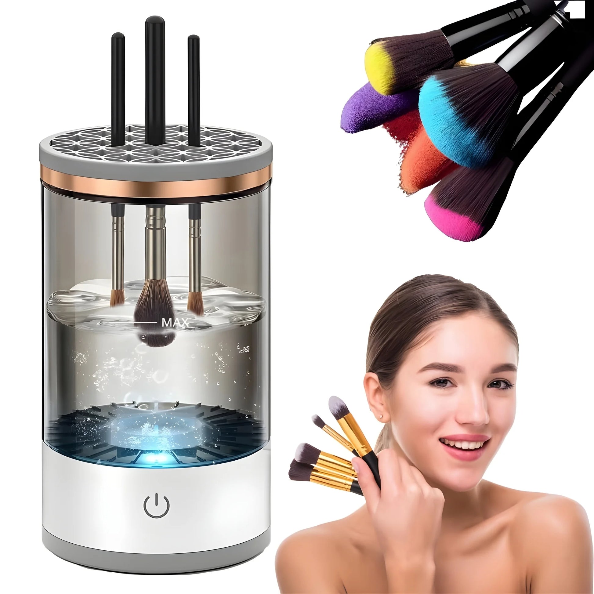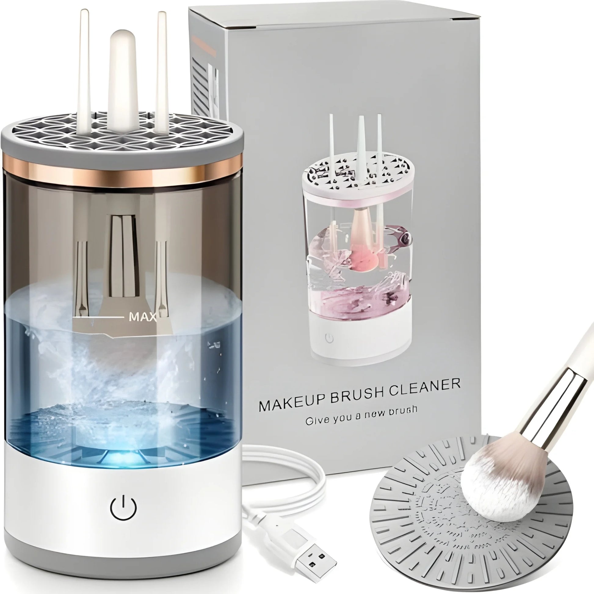 Say goodbye to tedious brush washing! This automatic electric makeup brush cleaner spins, rinses, and dries your brushes quickly — so you spend less time cleaning and more time glowing.