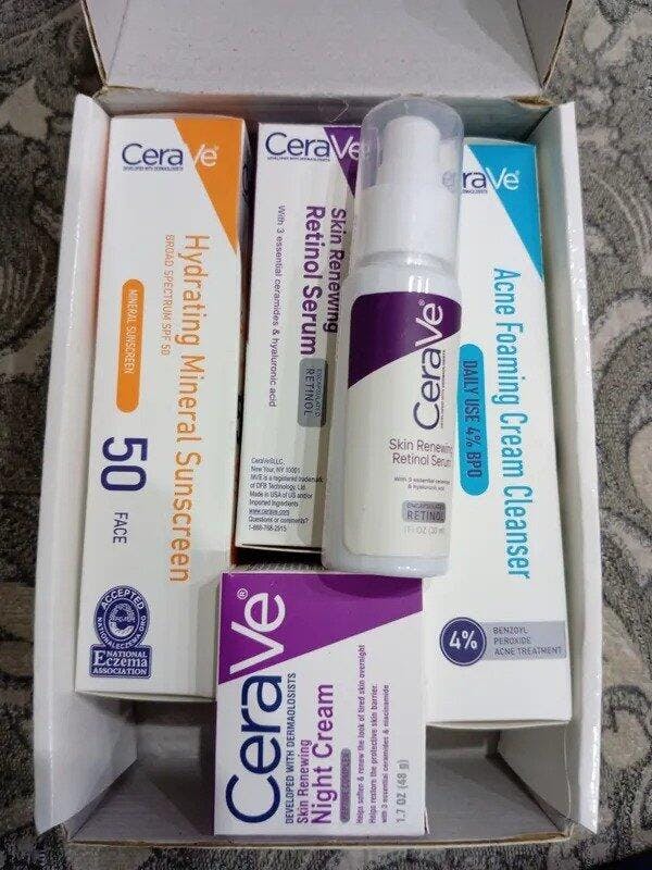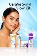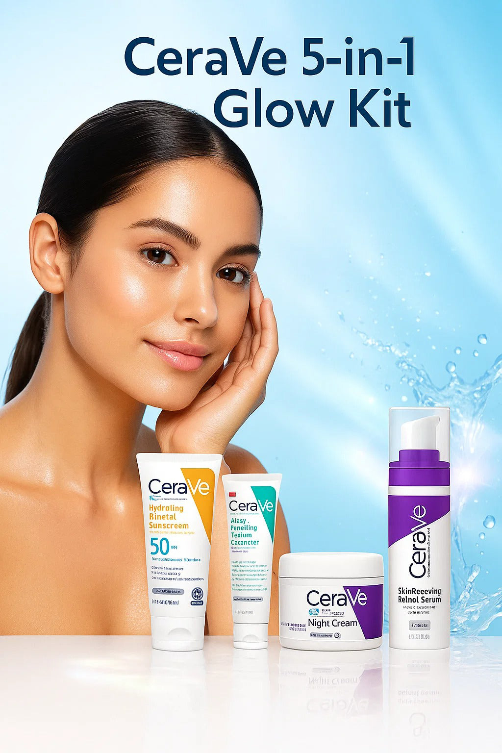 Get glowing, healthy skin with the CeraVe 4-in-1 Glow Kit your all-in-one skincare solution. It includes a hydrating cleanser, brightening serum, repairing night cream, and protective sunscreen. Developed with dermatologists and powered by essential ceramides + hyaluronic acid for a radiant, balanced complexion.