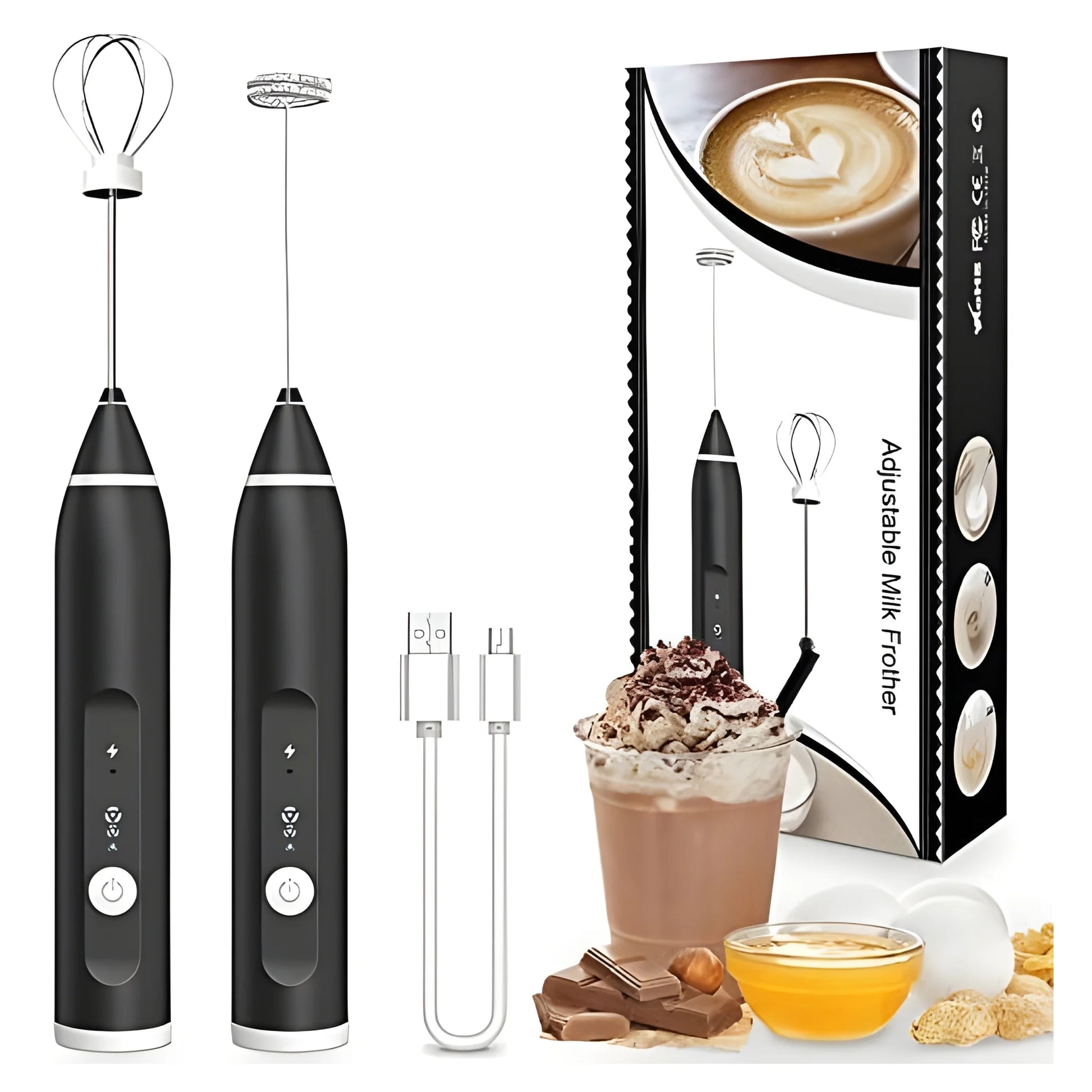 Two speed settings / high RPM (e.g., 4000 / 5500 / 7000 RPM) for customizable froth Multiple whisk heads typical configuration includes: 1 whisk head + 2 double spring heads