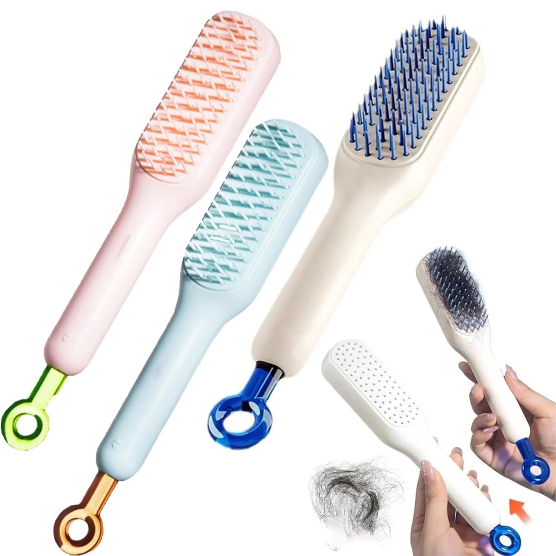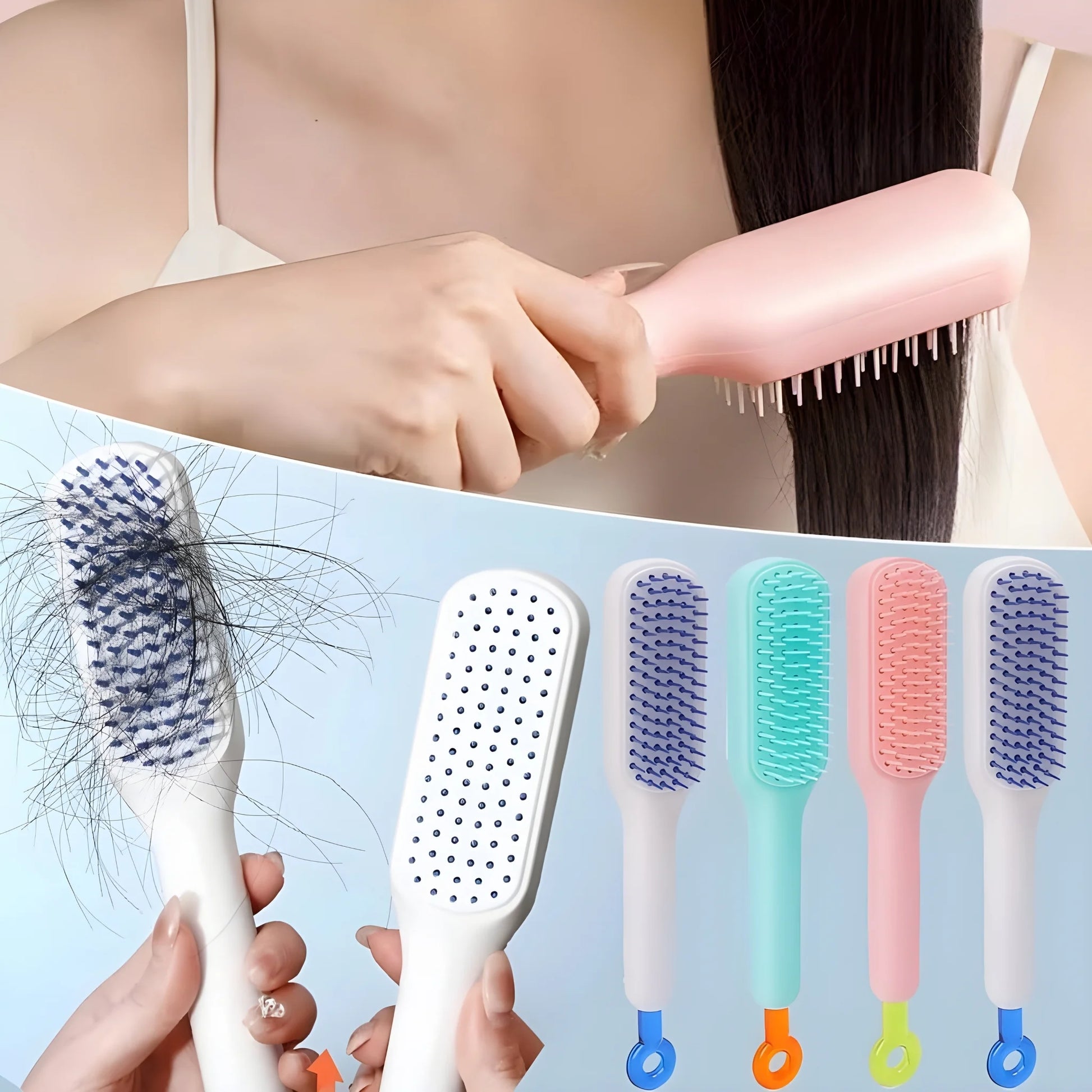 Self-Cleaning Hairbrush Multipurpose Detangler with Push-Button Clean