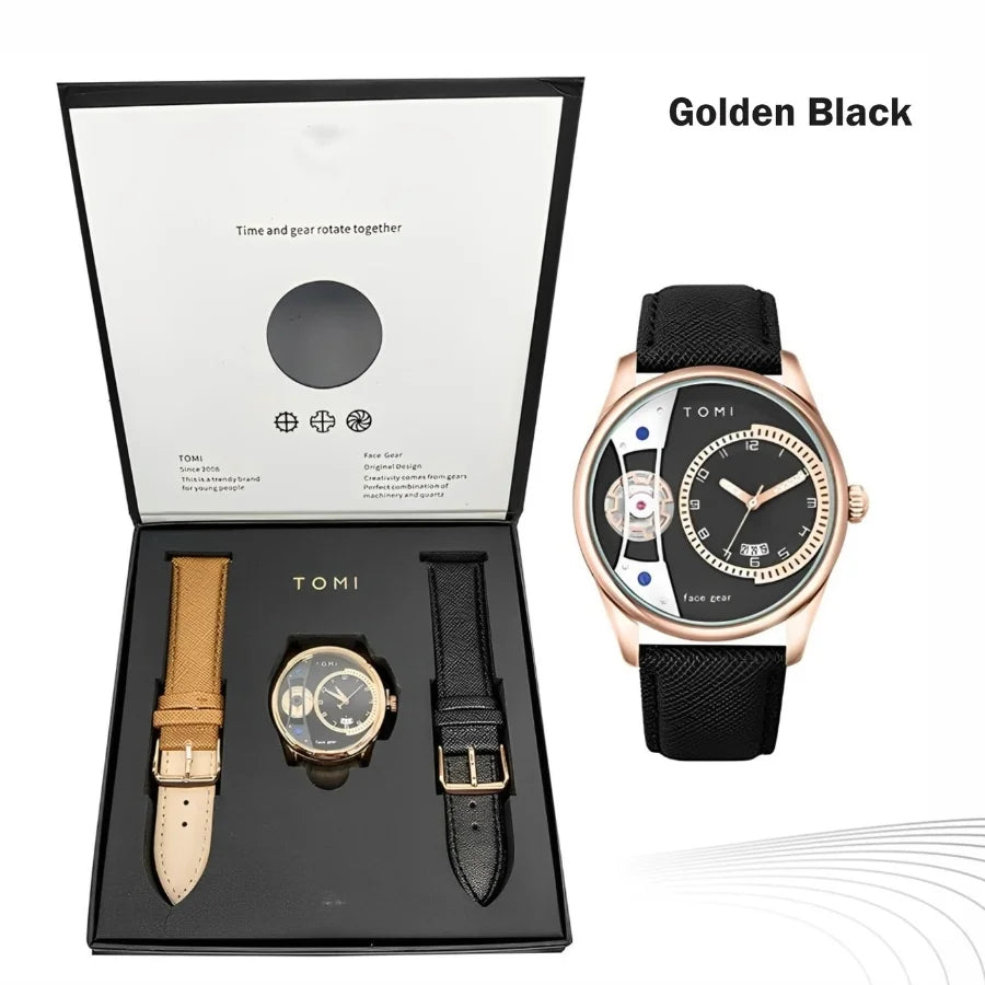 TOMI Face Gear Gentleman Dual-Strap Watch