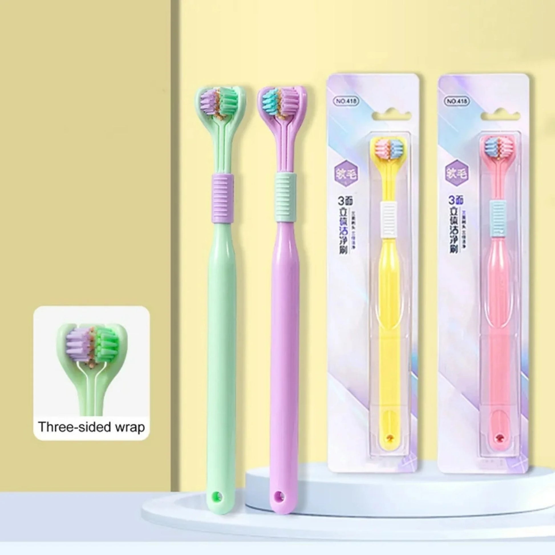 Triple-Sided Toothbrush Triple Head Soft Bristles for Fast Cleaning
